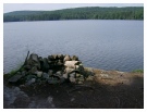 Description: This is a unique site. The fireplace sits atop a rock point that looks at all of Wildwood Cove, the Chapel site and some of the eastern lakeshore. Behind the rock is a mossy site that provides smaller but no less comfortable tent pads. As mentioned in the boat access section, the water of the west side of the site is seemingly bottomless. This makes it perfect for docking a boat or diving (at your own risk, of course). True to its name, the site is also situated such that echoes can be heard.